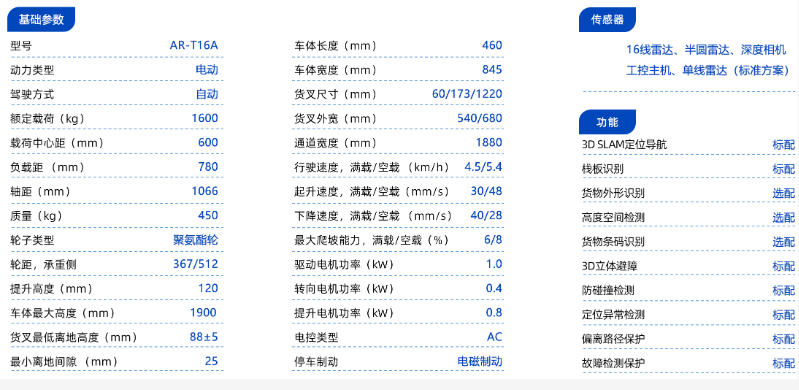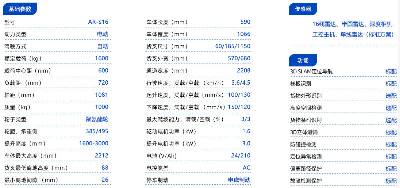 一款集自主搬运与自动、人工操作模式于一体的智能叉车,能够根据实际需求灵活切换工作方式,配置3D导航定位技术,室内外通用,兼容田川托盘,其设计旨在提升仓储物流作业的自动化水平,优化空间利用率,并显著增强作业安全性和效率。