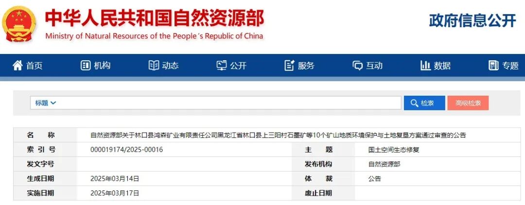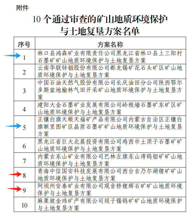 喜讯 | 由「中地绿矿」承担编制的四个新能源矿产“矿山地质环境保护与土地复垦方案”,同时在自然资源部官网公告!