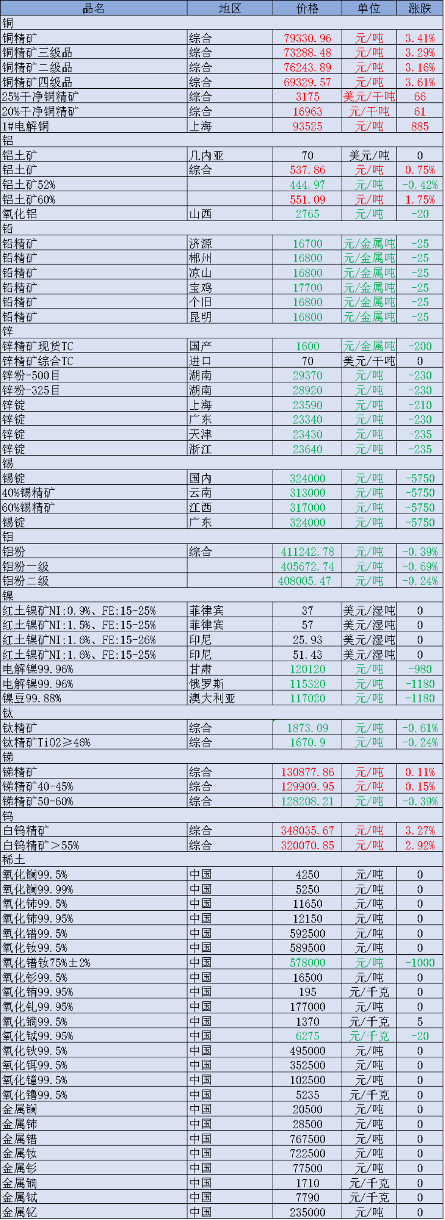 12月15日有色金属价格