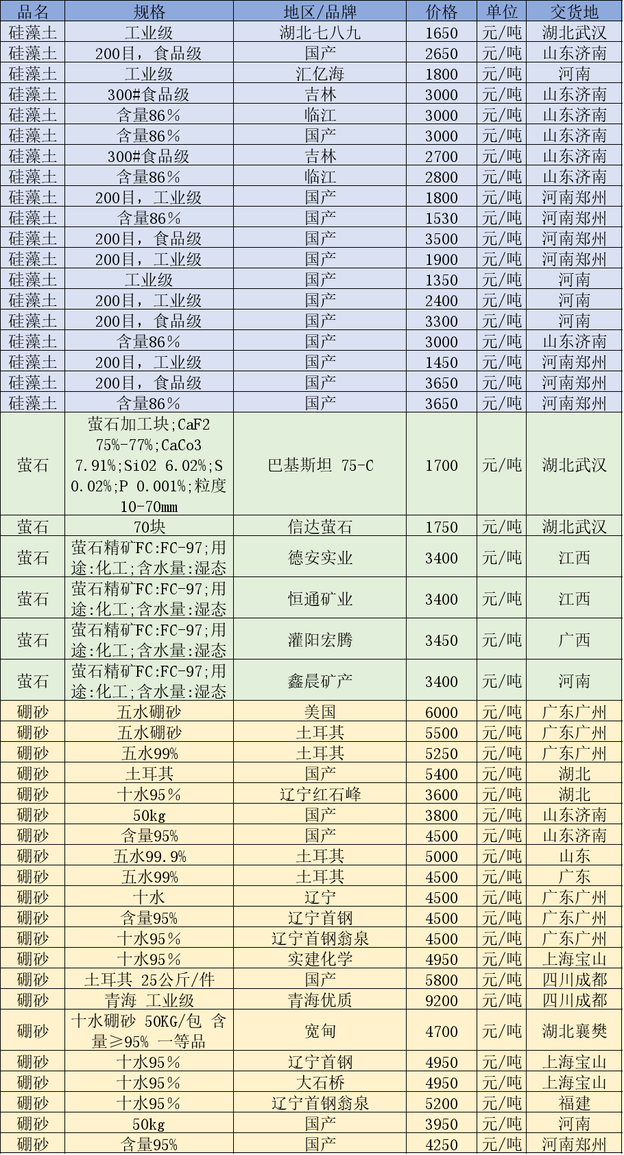 12月15日非金属矿价格