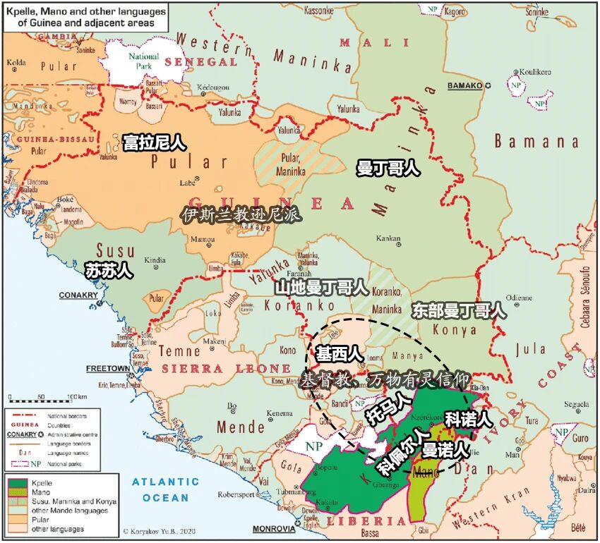 此外,几内亚东南部许多民族为跨境民族,与周边国家保持着千丝万缕的联系,如科佩尔人是利比里亚最大的民族。而且,几内亚东南部所接壤的邻国利比里亚、科特迪瓦曾发生过内战,存在非政府的武装组织和难民流动的现象,威胁当地局势稳定。