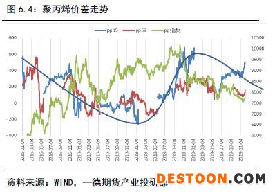 通过上述分析可以知道,聚丙烯的景气周期面临结束,供求格局在2020年迎来拐点,节奏上和聚乙烯一样,主要是产能投放和补库存的影响。预计聚丙烯价格的下边界将靠近外购煤路线的成本,大概在6800-7000。上边界根据波动率和下游承受力预计在8200-8500。