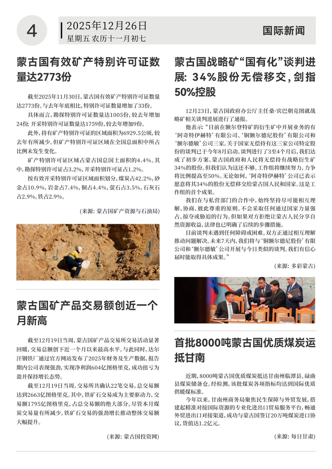 蒙古国矿产品交易额创近一个月新高