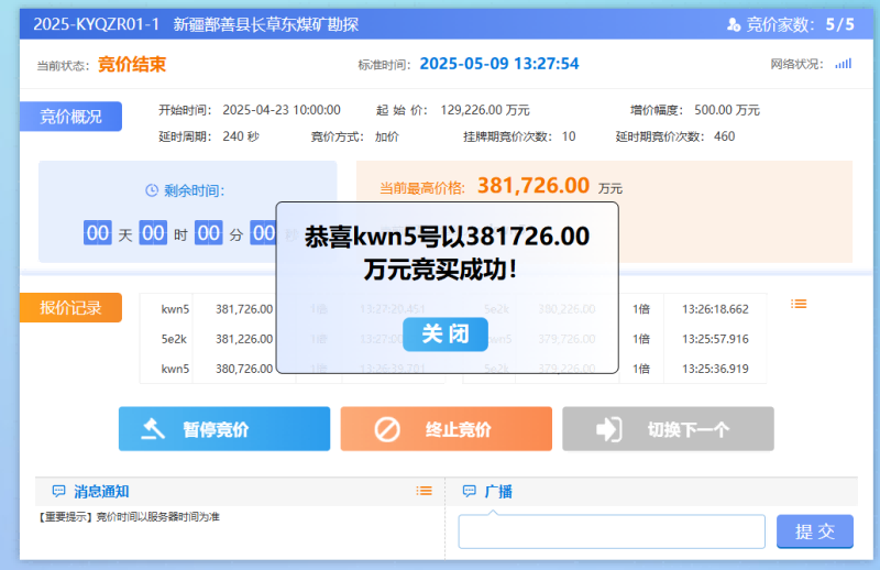 新疆鄯善县长草东煤矿探矿权项目成交截图
