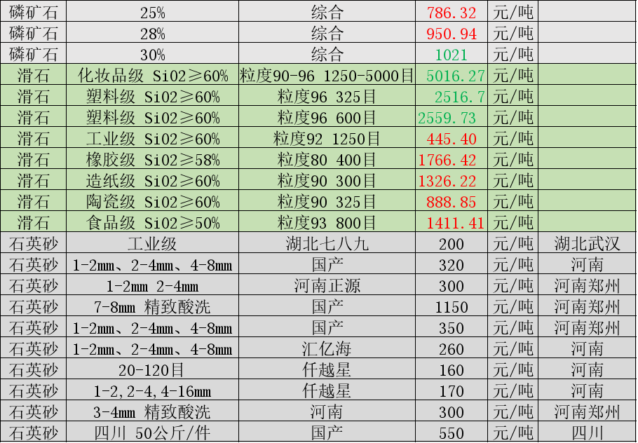 非金属矿价格