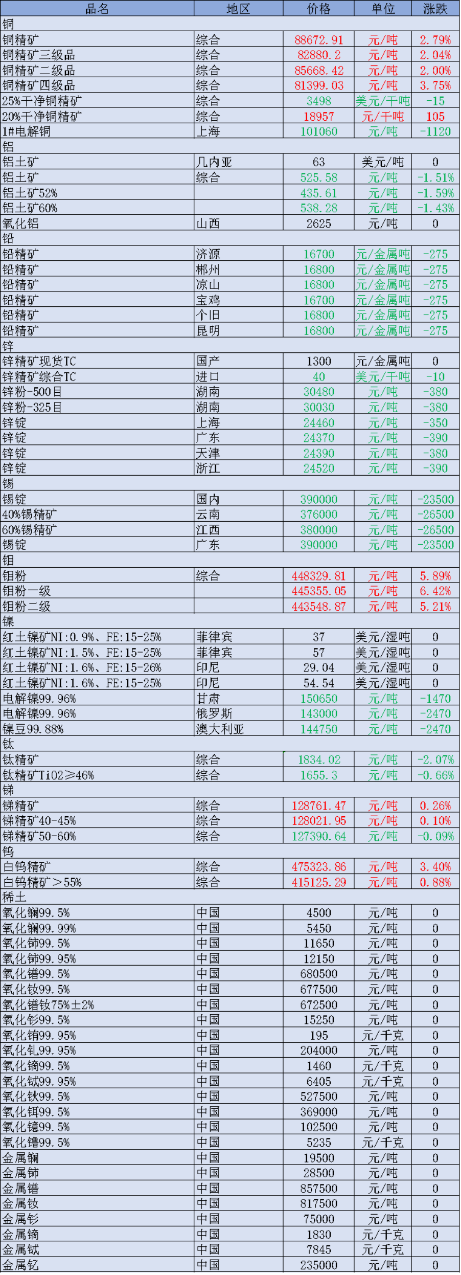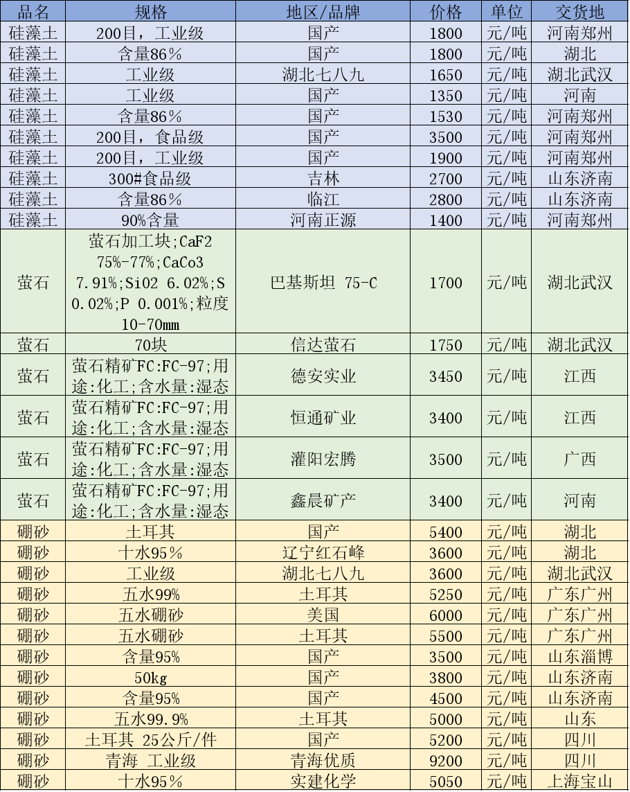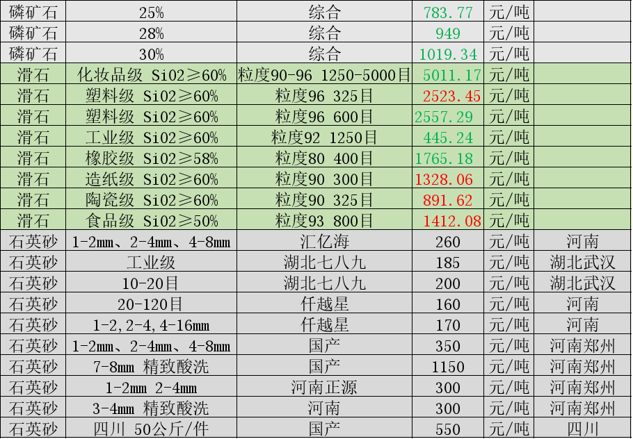 非金属矿价格