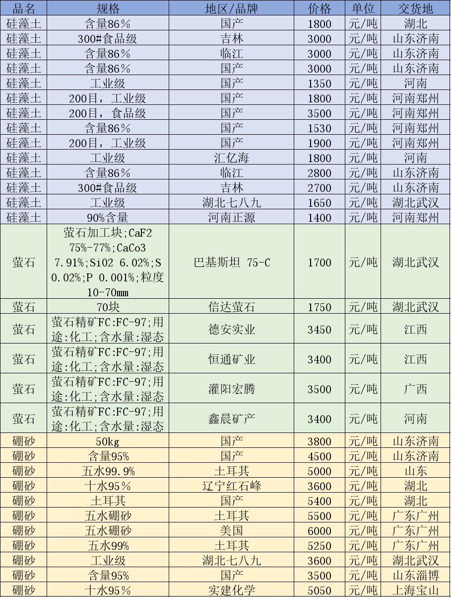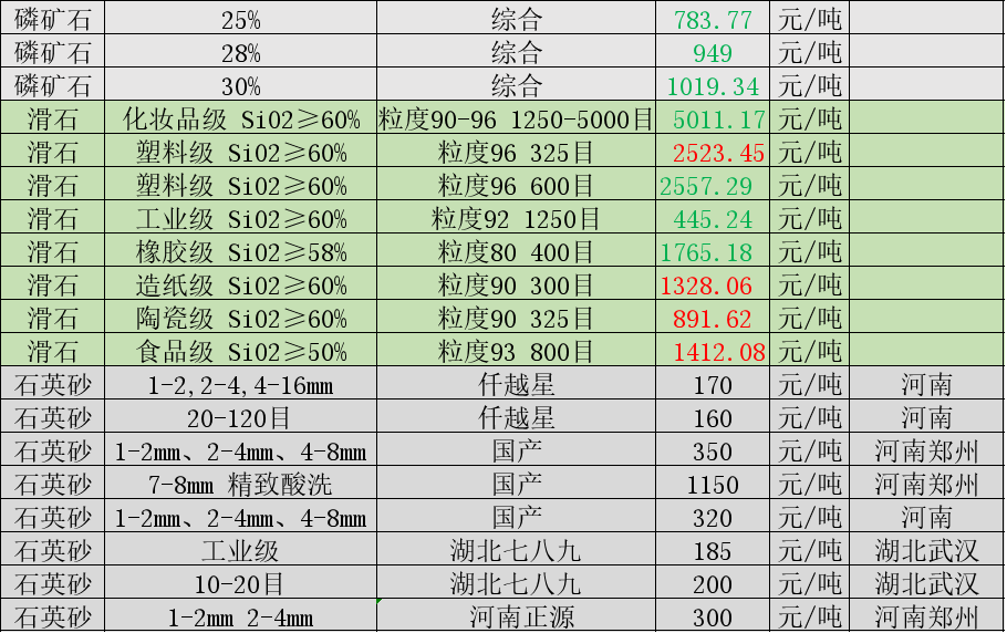 非金属矿价格