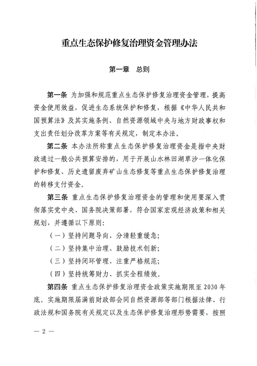 关于印发《重点生态保护修复治理资金管理办法》的通知