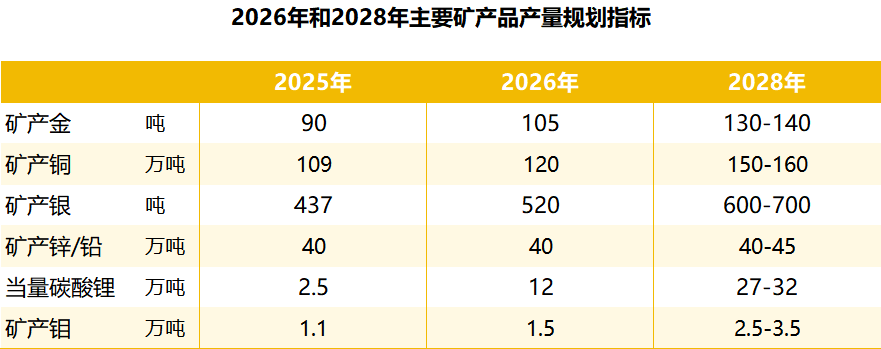 2月9日,紫金矿业公告发布“三年(2026-2028年)规划和2035年远景目标纲要”,规划到2028年,公司的资源储量、主要矿产品产量、销售收入、资产规模、利润等综合指标排名进一步提升,铜、金矿产品产量进入全球前3位,全面建成高度适配且具有紫金特色的全球化运营管理体系和ESG可持续发展体系;力争到2035年,公司主要指标较2025年实现跨越式增长,部分指标达到全球首位,全面建成“绿色高技术超一流国际矿业集团”。