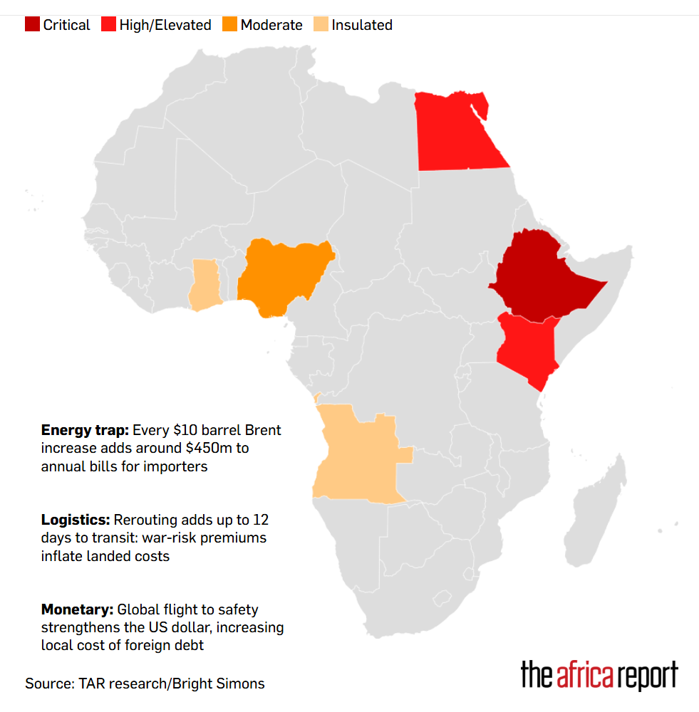 表面上看,油价上涨能为尼日利亚等石油出口国带来账面收入的增加,但由于本国产量受限、仍需进口成品油,其实际益处正被通胀和资本外流风险所抵消。对于南非、肯尼亚、坦桑尼亚等绝大多数净进口国,冲击更为直接:油价飙升推高燃料与运输成本,加剧输入性通胀;美元走强导致非洲货币贬值、偿债成本上升。战火已从能源蔓延至空中——中东领空关闭导致迪拜、多哈等枢纽瘫痪,严重削弱非洲全球连通性。从东非茶叶出口到乌干达宗教领袖呼吁,危机正渗透非洲每个角落。