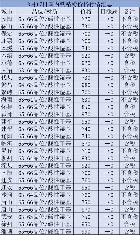 3月17日国内铁精粉行情汇总
