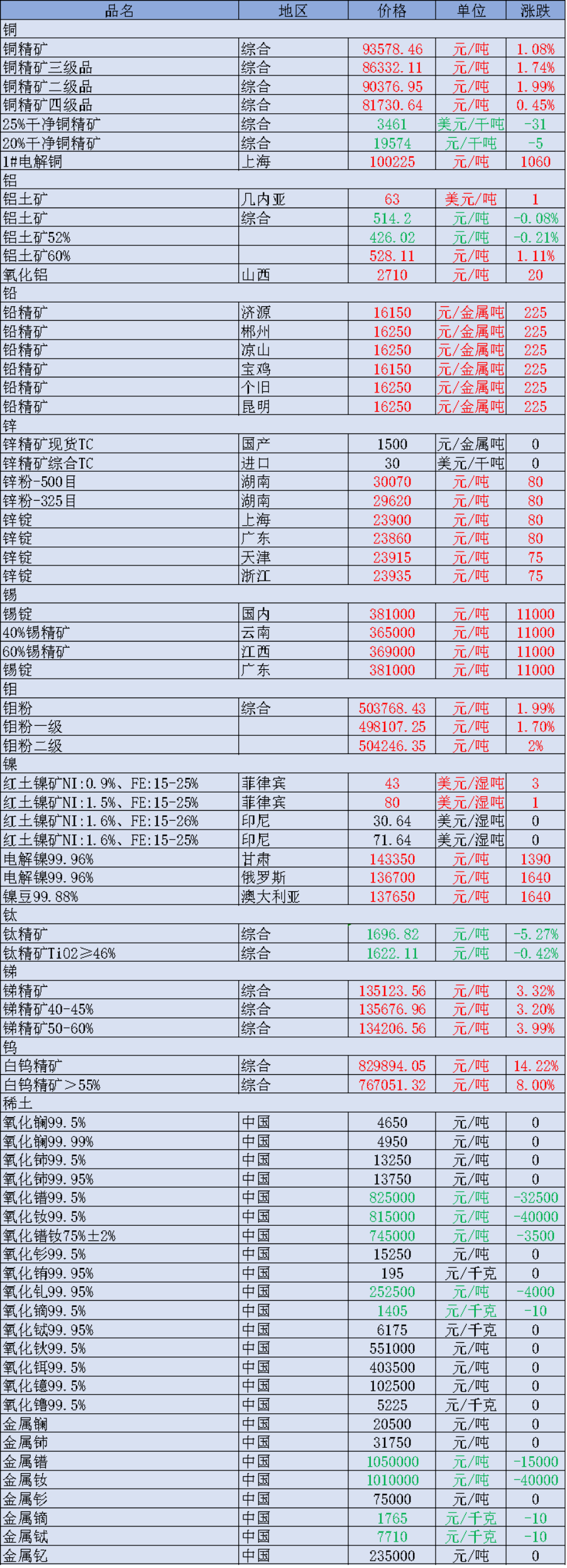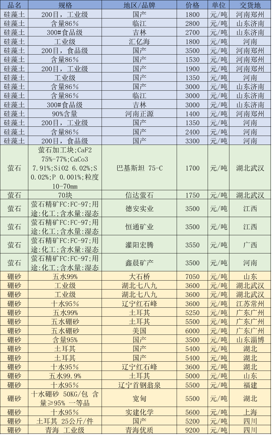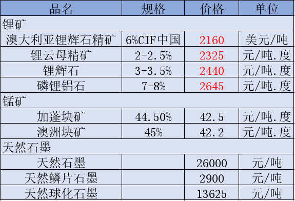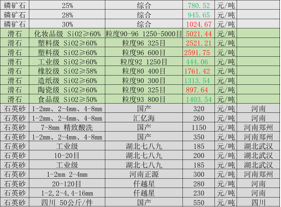 非金属矿价格