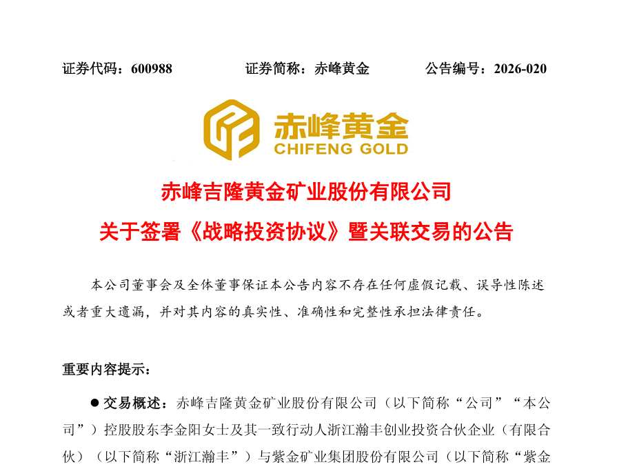 核心提示:3月23日早间,A股、H股资本市场双双炸出重磅消息!紫金矿业与赤峰黄金同步发布公告,一场总价超百亿的矿业巨头并购案正式落地,紫金矿业通过全资子公司,斥资近183亿元拿下赤峰黄金控制权,成为近期黄金行业最受瞩目的资本大动作。