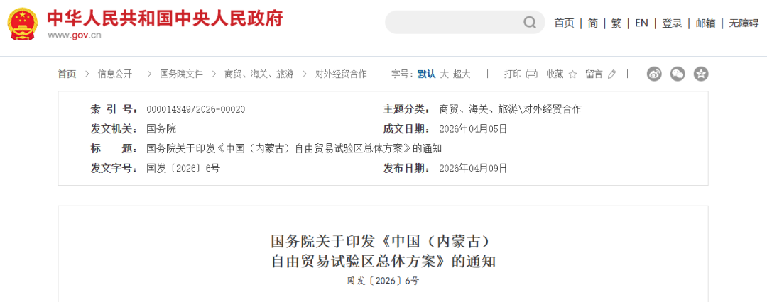 建立中国(内蒙古)自由贸易试验区(以下简称自贸试验区)是党中央、国务院作出的重大决策,是进一步全面深化改革、推进高水平对外开放、推动高质量发展的重要战略举措。为高标准高质量建设自贸试验区,制定本方案。
