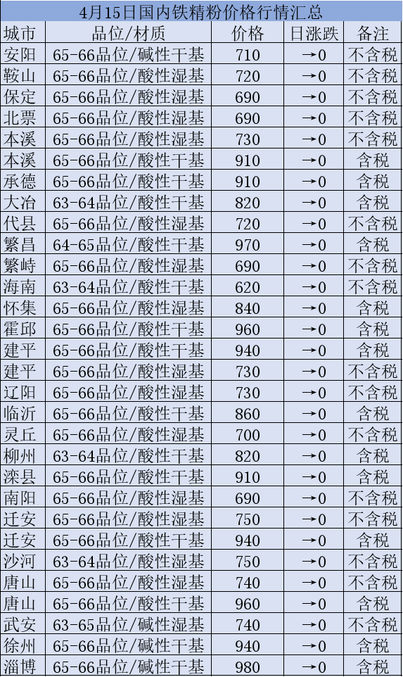 4月15日国内铁精粉行情汇总