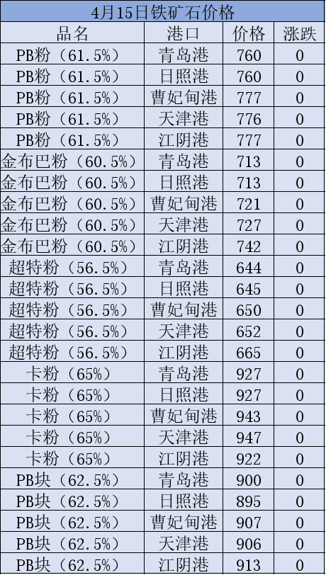 核心提示:4月15日矿石价格汇总