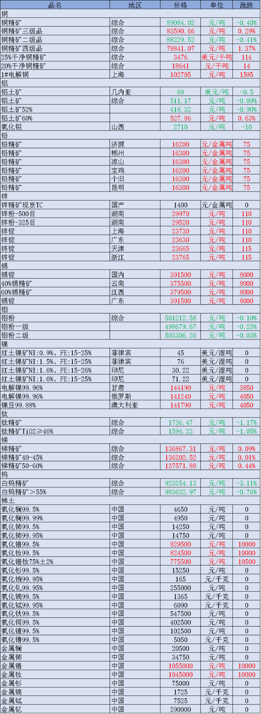 • 4月13日矿石价格汇总