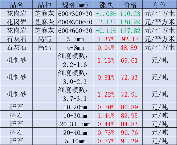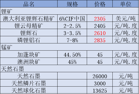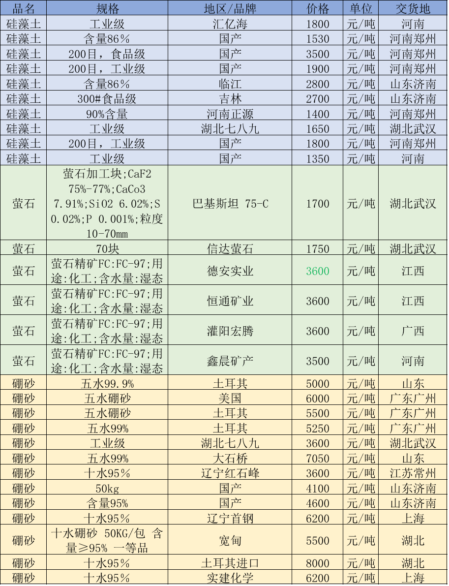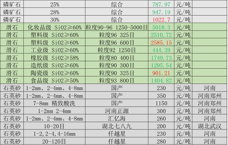 4月15日非金属矿价格
