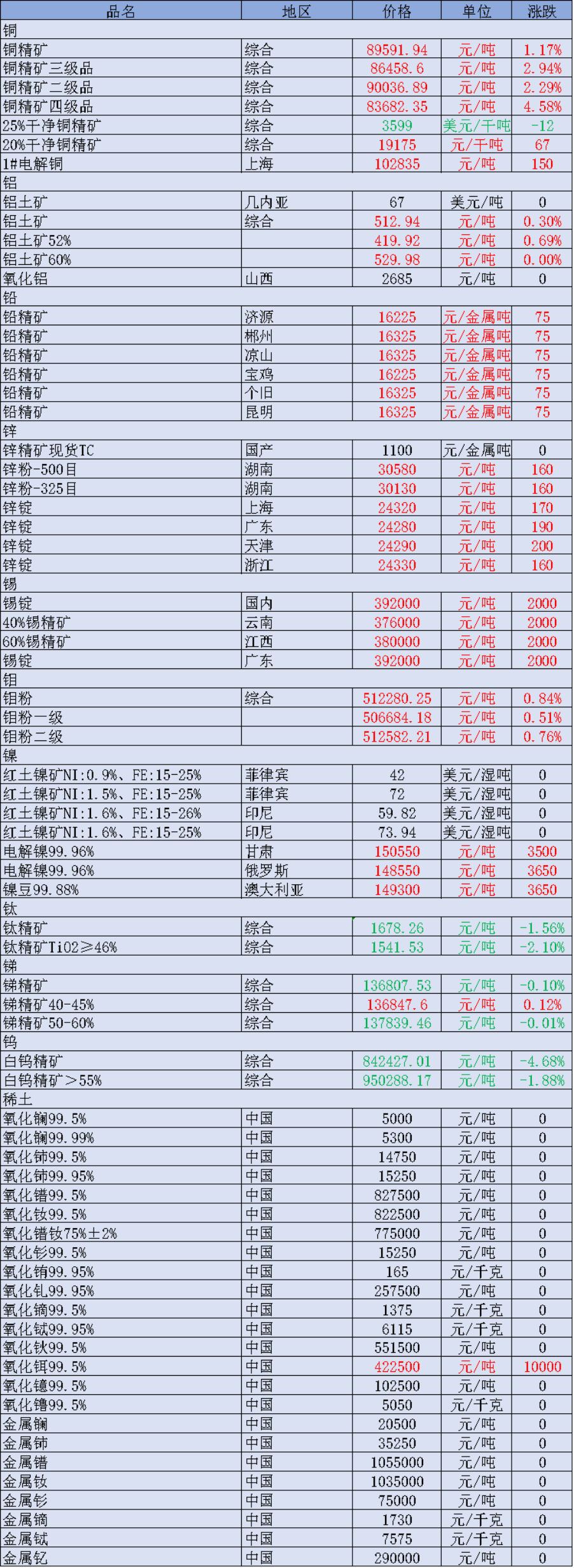 • 4月16日矿石价格汇总